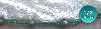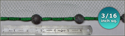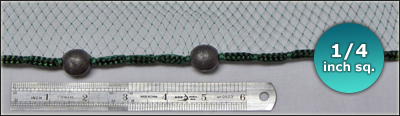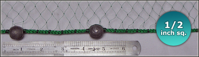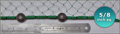- Each lead is securely crimped to lead line, preventing movement and prolong life of net (Except for 1/2" sq. mesh Bait Busters)